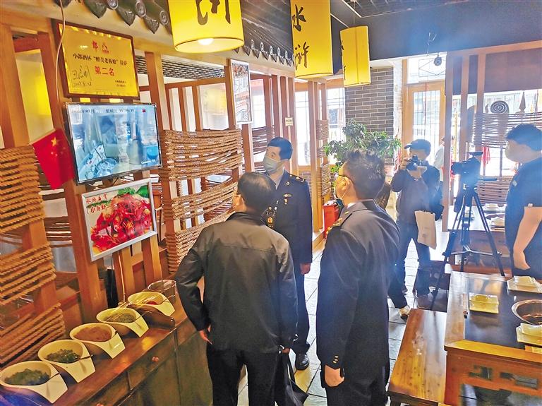 拉薩市市場(chǎng)監(jiān)管局及相關(guān)部門組成檢查組在某餐廳查看“明廚亮灶”情況。
