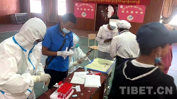 圖為尼木縣中學(xué)師生在校封閉管理期間按照要求進(jìn)行核酸檢測 拉薩市尼木縣中學(xué)供圖