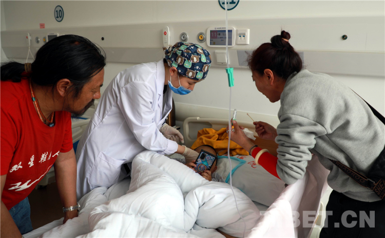 圖為中國(guó)醫(yī)學(xué)科學(xué)院整形外科醫(yī)院唇腭裂整形科博士研究生正在為來(lái)自青海省果洛藏族自治州的患兒進(jìn)行手術(shù)后護(hù)理 攝影:劉莉