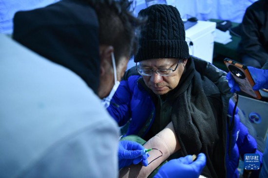 中科院院士朱彤(右)在采集血樣用于急進(jìn)高原人群健康研究(10月1日攝)。新華社記者 晉美多吉 攝