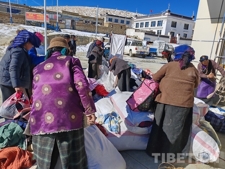 圖為定結(jié)鄉(xiāng)黨委領(lǐng)導(dǎo)為村民發(fā)放衣物場(chǎng)景。