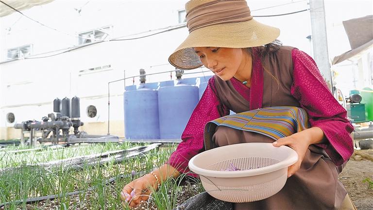 眼下,走進位于薩迦縣扯休鄉(xiāng)的藏紅花種植基地,一朵朵紫色小花內(nèi)生長著紅色的花絲,色澤鮮亮、香氣濃郁。據(jù)悉,在上海援藏干部與上海醫(yī)藥旗下的上海市藥材有限公司支持下,“匯愛薩迦·藏紅花種植項目”于2023年在薩迦縣扯休鄉(xiāng)落成。基地今年的產(chǎn)量在去年的基礎上增加了20%到30%,產(chǎn)品的品質(zhì)、花絲的長度以及所含的有效成分都非常理想。隨著這些“紅色寶藏”迎來一次又一次的豐收,將帶動更多當?shù)厝罕妼崿F(xiàn)就業(yè)增收。