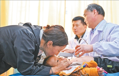 西藏山南市措美縣中心醫(yī)院,來自安徽醫(yī)科大學第一附屬醫(yī)院的醫(yī)生在為兒童做先心病篩查。程 兆攝(影像中國)
