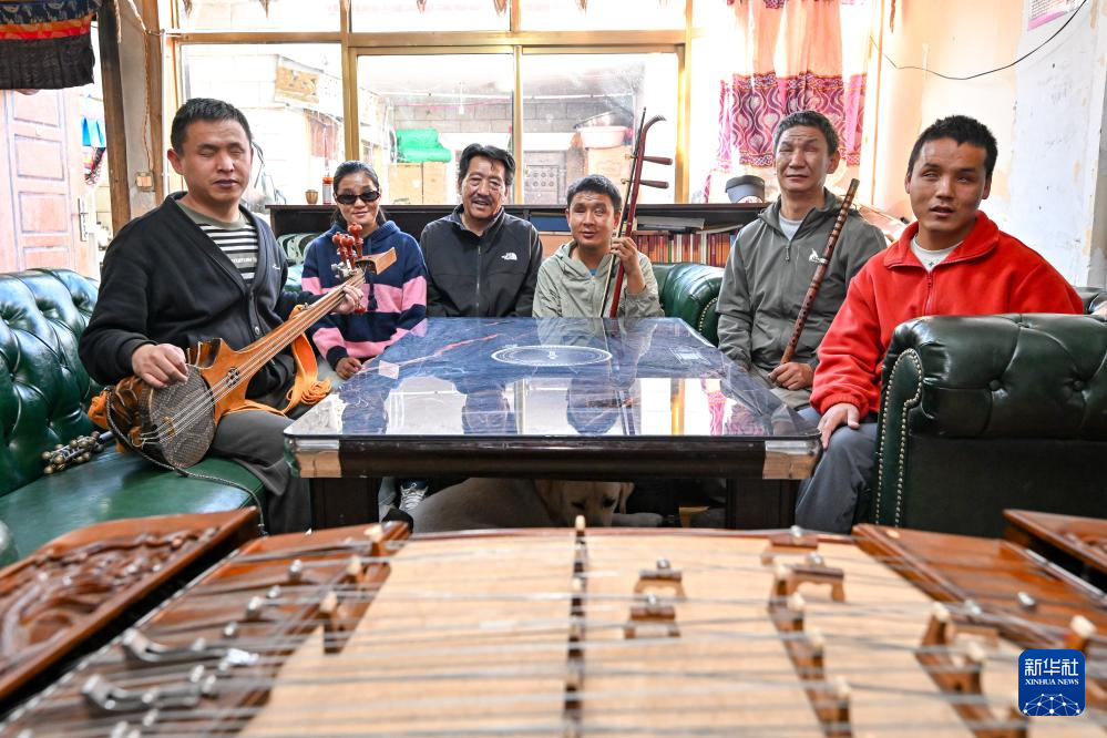 在其美多吉老師的悉心指導(dǎo)下,這群年輕人逐漸掌握了二胡、揚(yáng)琴、扎念琴等傳統(tǒng)樂器,開始了朗瑪堆諧的表演生涯?!澳菚?huì)兒天不亮就起床,練三個(gè)小時(shí)才吃早飯,然后一直練到天黑?!睒穲F(tuán)主唱次仁曲珍回憶道,“剛開始時(shí),一兩個(gè)月才能學(xué)會(huì)一首曲子?!?/p>