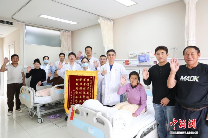 64歲的姐姐次仁忠嘎和56歲的妹妹丁增,在南開大學(xué)附屬北辰醫(yī)院骨關(guān)節(jié)科接受了機(jī)器人輔助下雙側(cè)全膝關(guān)節(jié)表面置換術(shù),術(shù)后家屬為該院醫(yī)護(hù)團(tuán)隊(duì)獻(xiàn)上哈達(dá)及錦旗。(南開大學(xué)附屬北辰醫(yī)院供圖)