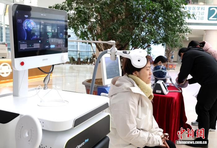 3月19日,市民在山東第一醫(yī)科大學(xué)附屬省立醫(yī)院“世界睡眠日”活動(dòng)現(xiàn)場(chǎng),體驗(yàn)經(jīng)顱磁刺激治療。趙曉 攝