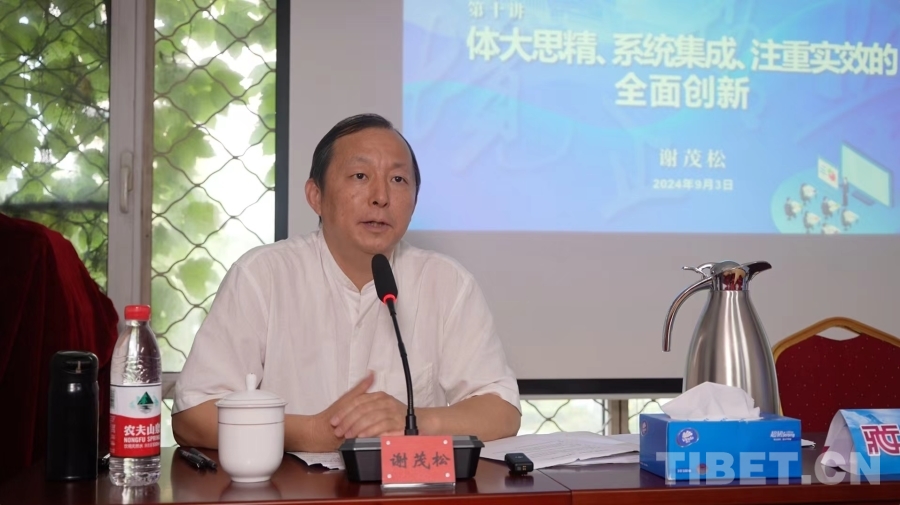 9月3日下午,國家創(chuàng)新與發(fā)展戰(zhàn)略研究會資深研究員,中國文明和中國道路研究中心主任,清華大學(xué)國家戰(zhàn)略研究院資深研究員謝茂松應(yīng)邀到中國西藏信息中心,做客“榮豐大講堂”,以《體大思精、系統(tǒng)集成、注重實效的全面創(chuàng)制》為題,分享其學(xué)習(xí)黨的二十屆三中全會精神的體會和認識。