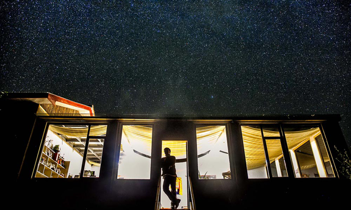 站在精致的民宿前,于秋季,看漫天繁星閃爍。