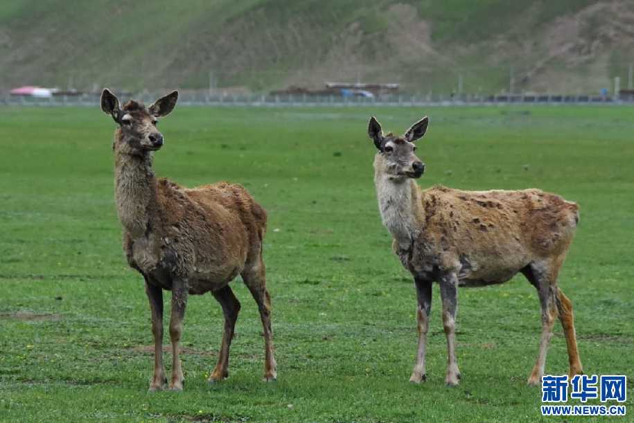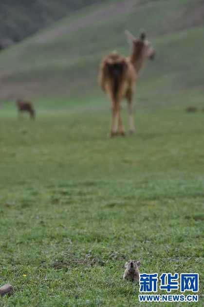 保護區(qū)內馬鹿和兔鼠和諧相處(6月24日攝)。新華網 張宸 攝