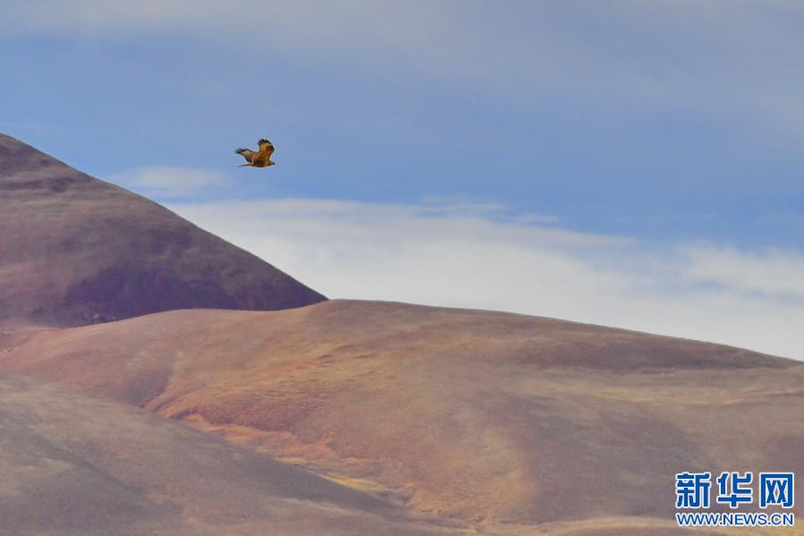 一只紅隼在藏北高原上飛翔(1月16日攝)。新華社記者 張汝鋒 攝