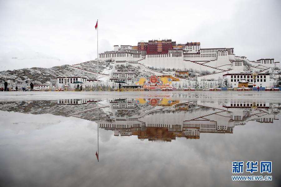 3月14日拍攝的雪中的布達拉宮。新華社記者 孫瑞博 攝
