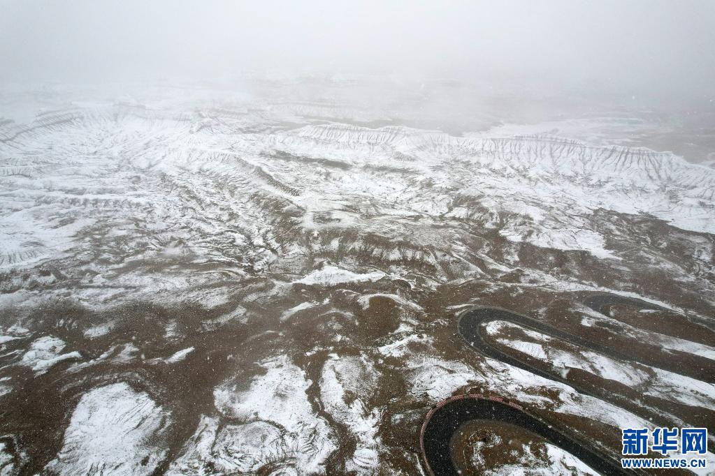 5月20日拍攝的雪中的札達(dá)土林景色(無(wú)人機(jī)照片)。新華社記者 孫瑞博 攝