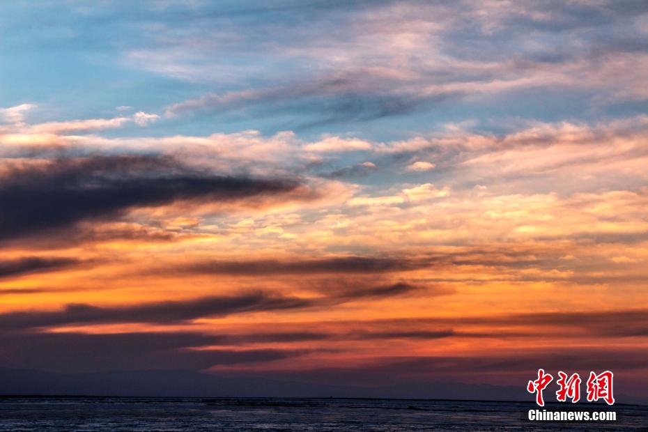 初春時(shí)節(jié),“高原藍(lán)寶石”青海湖還未開湖,青海湖二郎劍景區(qū)里,霞光萬道,宛若仙境。晚霞夾雜在清澈透明的藍(lán)天里,或淡粉色,或玫瑰紅,讓青海湖有了動(dòng)感美,快來和小編一起領(lǐng)略這醉人景色吧。趙海梅 攝