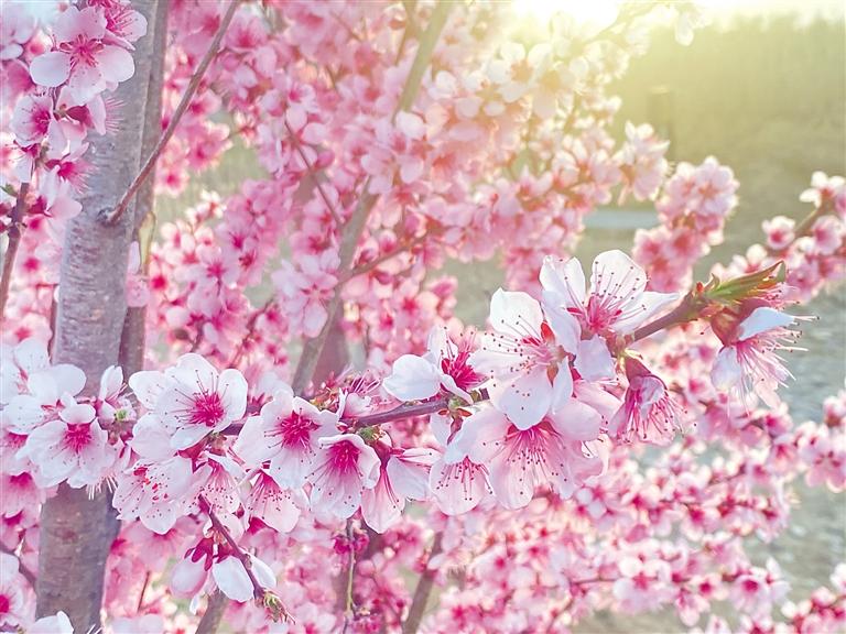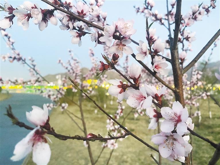 拉薩市中華文化公園里盛開的桃花。