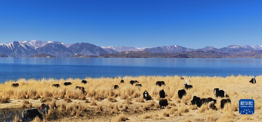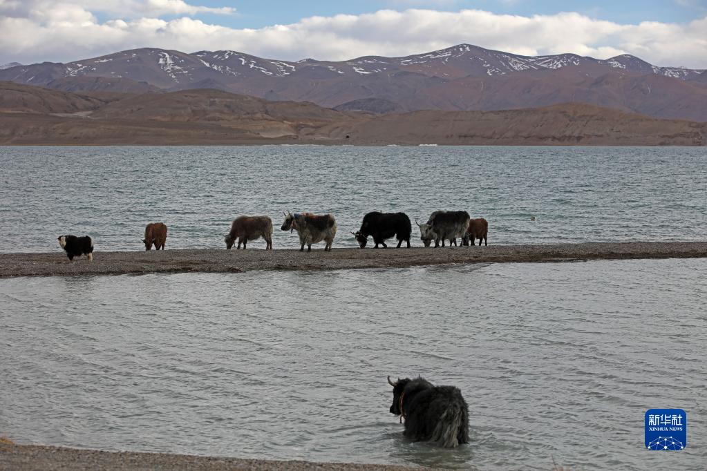 這是4月9日在班公湖畔拍攝的牦牛。新華社記者 姜帆 攝