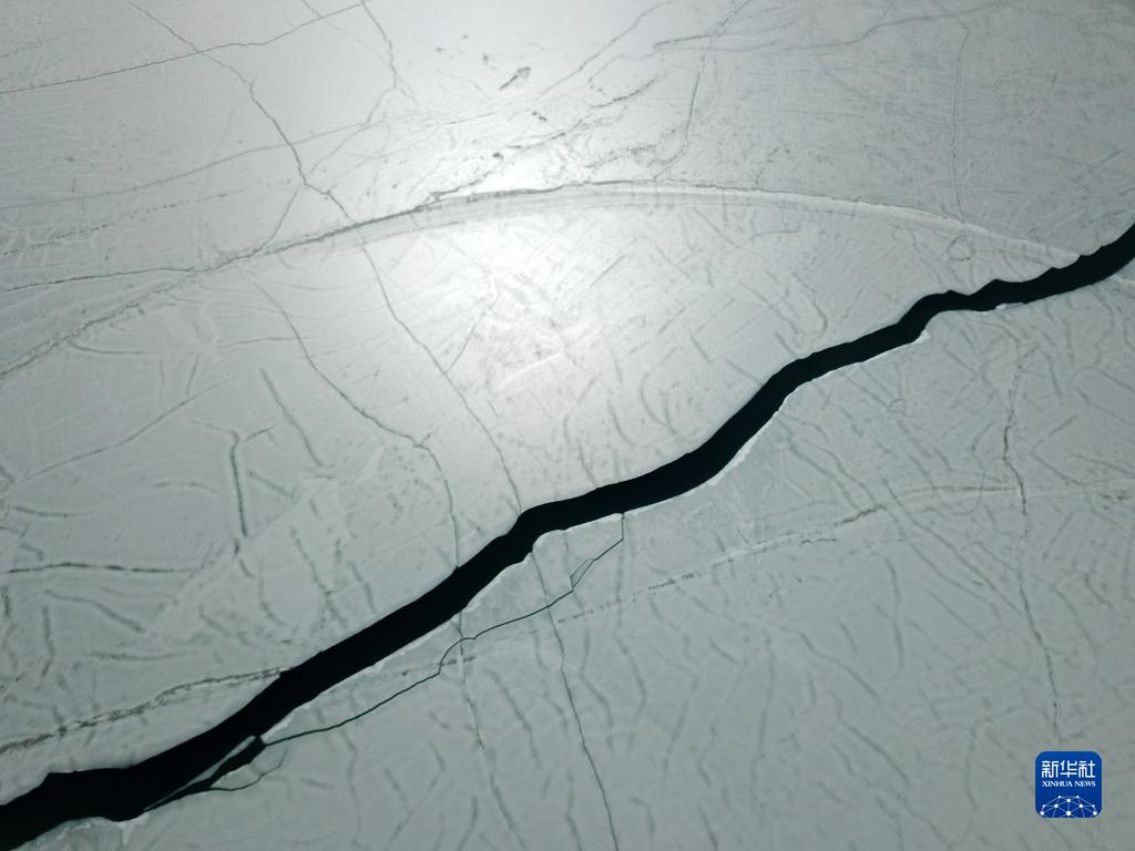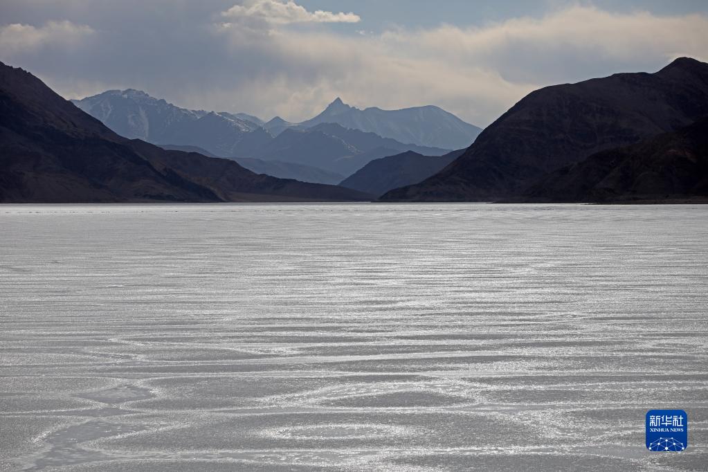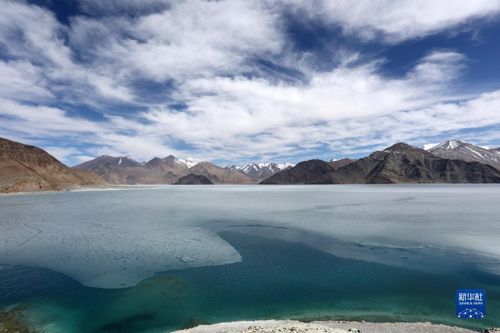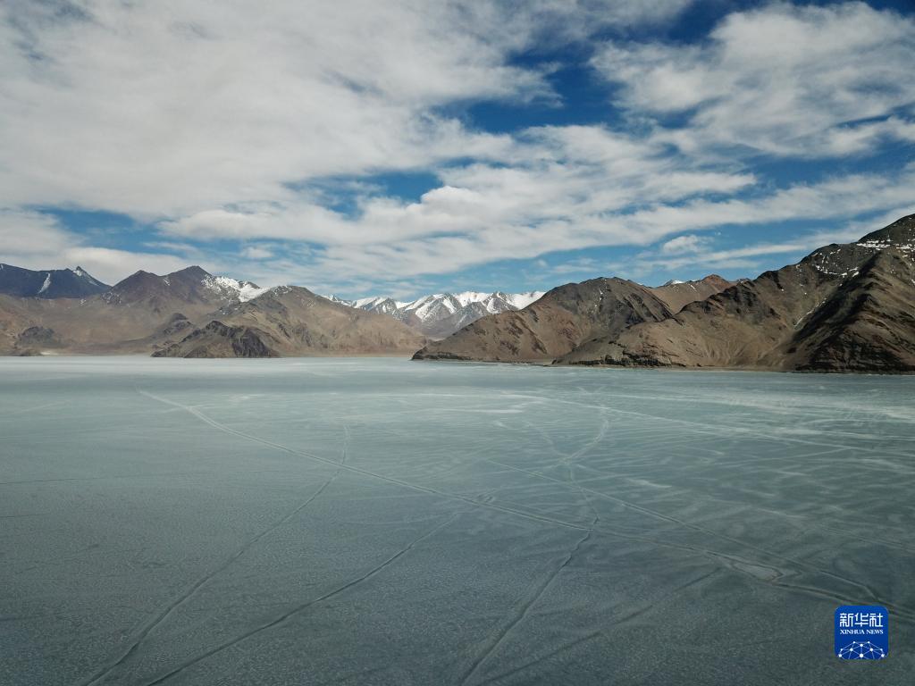 這是4月9日拍攝的班公湖冰面。由于湖體狹長(zhǎng),部分湖面仍未解凍。新華社記者 姜帆 攝