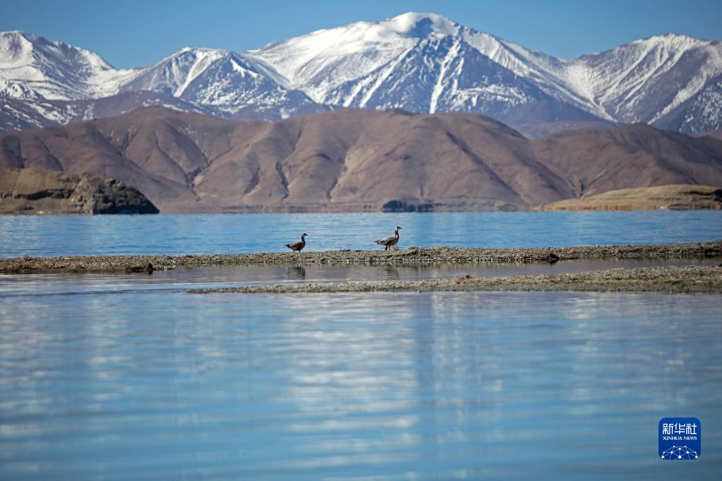 這是4月8日在班公湖畔拍攝的斑頭雁。新華社記者 姜帆 攝