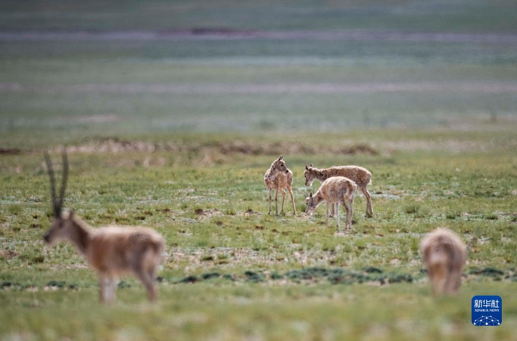 這是在羌塘國(guó)家級(jí)自然保護(hù)區(qū)內(nèi)拍攝的藏羚羊(7月11日攝)。新華社記者 周荻瀟 攝