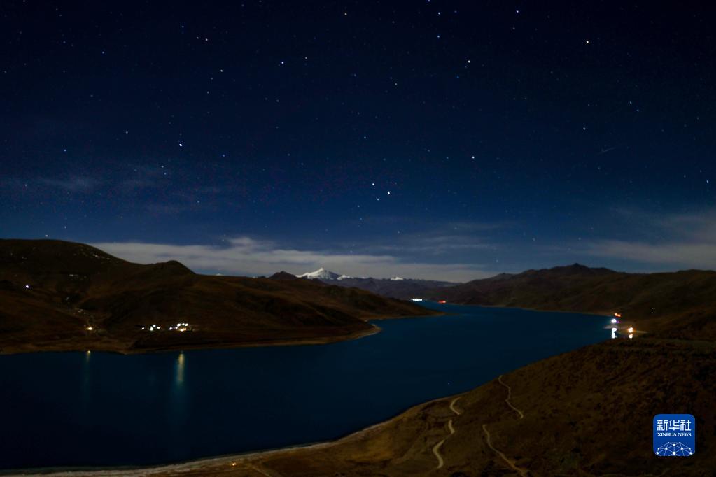 這是星空下的羊卓雍錯(1月1日攝)。新華社記者 姜帆 攝