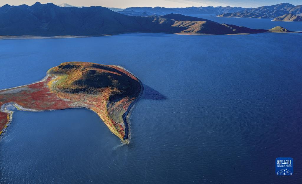 這是夕陽下的羊卓雍錯(1月1日攝)。新華社記者 姜帆 攝