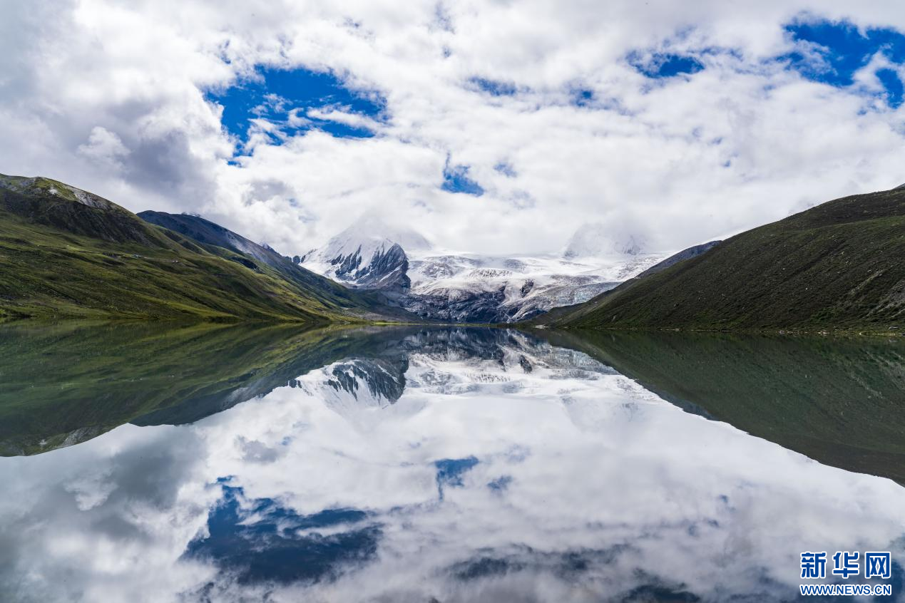 佩枯錯(cuò)和遠(yuǎn)處的雪山(9月2日攝)。新華社記者 李鍵 攝