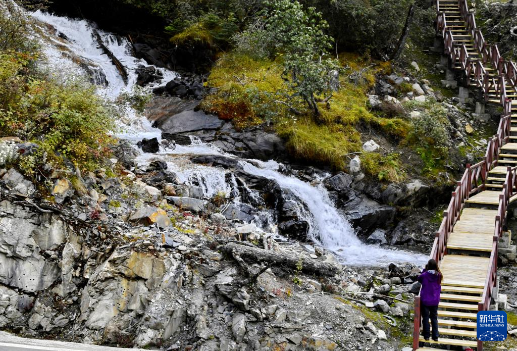 10月24日,游客在西藏隆子縣玉麥鄉(xiāng)欣賞美景。新華社記者 張汝鋒 攝