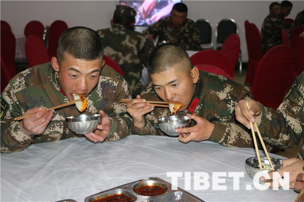 據(jù)悉,該總隊(duì)各基層單位還組織了撲克、套圈、乒乓球、臺(tái)球等有獎(jiǎng)比賽,進(jìn)一步密切了官兵之間的關(guān)系,使官兵在享受游戲歡樂(lè)的同時(shí)增長(zhǎng)了知識(shí),特別是讓新戰(zhàn)士在部隊(duì)度過(guò)的第一個(gè)春節(jié)不“孤單”。警通勤務(wù)中隊(duì)新戰(zhàn)士薛小龍說(shuō):“我雖是第一次離家過(guò)年,心里難免會(huì)有些想家的念頭,但在這么溫馨的大家庭里跟戰(zhàn)友們一起過(guò)年,這樣的氛圍更有一番年味,我一定會(huì)安心服役,圓滿(mǎn)完成好上級(jí)賦予的各項(xiàng)任務(wù),做一個(gè)讓領(lǐng)導(dǎo)放心,讓家人安心的好戰(zhàn)士?!保ㄖ袊?guó)西藏網(wǎng) 圖、文/夏明勇、潘興耀)