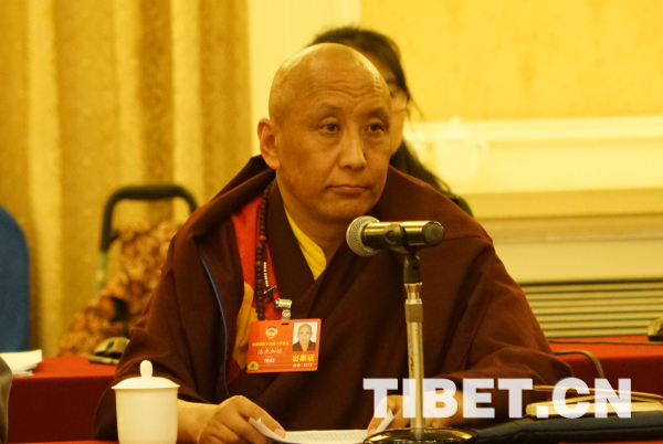 圖為洛卓加措在政協(xié)宗教界別小組會上發(fā)言