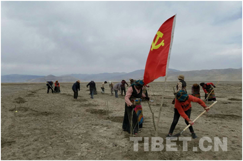 中國西藏網(wǎng)訊 仲春初四日,春色正中分。春天的拉薩河谷,萬物復(fù)蘇。在全民義務(wù)植樹的三月時節(jié),拉孜縣扎西崗鄉(xiāng)吉榮村路旁的沙地上,吉榮村駐村工作隊正在組織村民進(jìn)行義務(wù)植樹,轟鳴的機(jī)器聲和歡快的勞動號子,驚醒了農(nóng)田里前來越冬的各類候鳥。