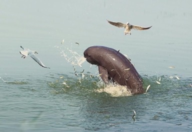 圖為江豚灣江豚在水中嬉戲(余干縣宣傳部提供)