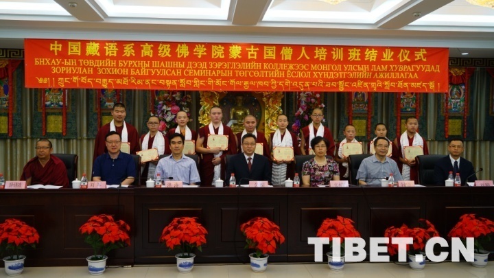 據(jù)介紹,中國(guó)佛協(xié)、中國(guó)藏學(xué)研究中心、雍和宮等單位相關(guān)負(fù)責(zé)人以及中國(guó)藏語(yǔ)系高級(jí)佛學(xué)院相關(guān)負(fù)責(zé)人及培訓(xùn)工作人員出席了結(jié)業(yè)儀式。蒙古國(guó)賽音諾門寺學(xué)僧和中國(guó)藏語(yǔ)系高級(jí)佛學(xué)院的經(jīng)師、學(xué)僧代表等參加了結(jié)業(yè)式。(中國(guó)西藏網(wǎng) 記者/王茜)