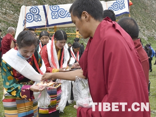 當(dāng)?shù)匦沤倘罕娐犝f十一世班禪要來夏季牧場放牧點(diǎn),紛紛趕著牦牛和馬在此等候,希望能瞻禮到大師的尊榮,為自己帶來賜福和好運(yùn)。