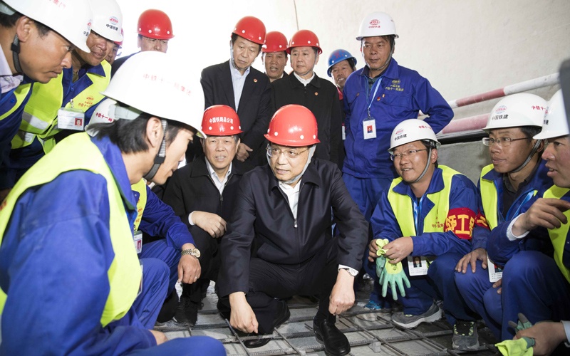 7月26日,李克強(qiáng)總理在山南市川藏鐵路拉林段施工現(xiàn)場。來源:中國政府網(wǎng)