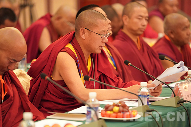 圖為山南市佛教協(xié)會會長達(dá)娃次仁發(fā)言。攝影:王淑