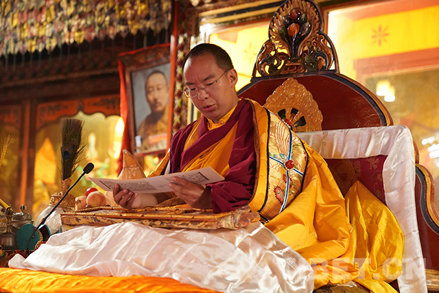 圖為十一世班禪領(lǐng)誦經(jīng)文。攝影:王淑