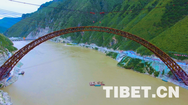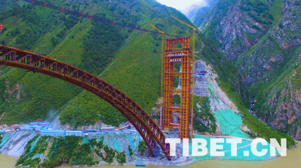 藏木特大橋位于西藏加查縣安饒鎮(zhèn)桑加峽谷內(nèi),地處海拔3350米的山地,主橋橫跨雅魯藏布大峽谷,水深66米,大橋采用430米中承式鋼管混凝土拱,拱高112米,是首座跨過雅魯藏布江的鐵路橋梁。