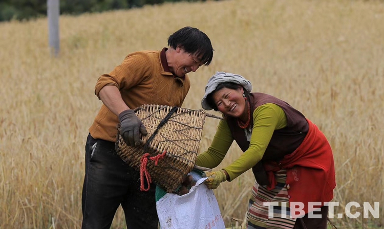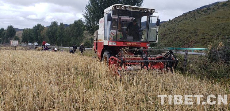 洛絨登巴家有10畝承包地,秋收成了大問題。過去秋收,家家都是人工手割,一人累了一天也割不了1畝地,耽誤農(nóng)時不說,還影響收成。像青稞麥類農(nóng)作物,太陽一曬,青稞崩落地了。像他家這么多的土地,用人工根本收不過來。甲洼鎮(zhèn)政府現(xiàn)擁有2臺聯(lián)合收割機,收割、脫粒、裝袋三道工序一次完成!過去得10多人收一周時間的地,現(xiàn)在兩小時便搞定了,而且做到了顆粒歸倉、秸稈還田!秋收時節(jié),整片地里,聯(lián)合收割機像技藝精湛的畫家,隨心所欲、胸有成竹、瀟灑自如地在壟間地頭揮毫!片片莊稼倒下后,袋袋糧食裝上拖拉機……那場面,甚是宏大而喜人!連洛絨登巴的岳母大人目睹秋收場景后,也不由感慨地說:“這一眨眼的工夫,糧食已從田間送進倉了,簡直像變戲法一樣!”