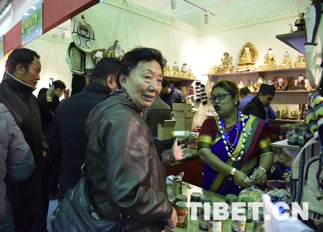 圖為市民在第十六屆中國(guó)西藏—尼泊爾經(jīng)貿(mào)洽談會(huì)上“淘寶”。攝影:王媛媛