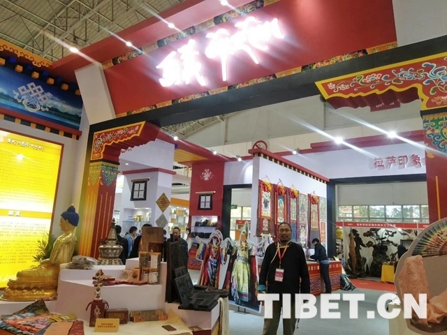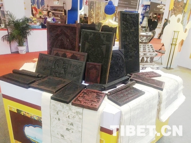 中國西藏網(wǎng)訊 10月25日至28日,第十三屆中國北京文化創(chuàng)意產(chǎn)業(yè)博覽會在京舉行。中國國際展覽館8011號館,紅瓦白墻的建筑風(fēng)格和異域元素的搭配吸引著眾人的目光。遠遠望去,門口立著一尊金身佛像,遠處的墻上掛著唐卡,櫥窗里擺放著造型奇特的面具——西藏!走近點,首先映入眼簾的是五顏六色的紙和染了墨水的木板雕刻字畫,再往里走,有木碗、石鍋、藏毯、藏香,還有布達拉宮造型的筆筒……各類文創(chuàng)產(chǎn)品讓人目不暇接。