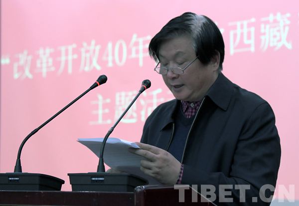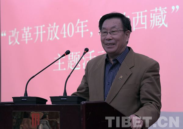 “四海共朝盛,高原展新顏?!?北京建藏援藏工作者協(xié)會(huì)副會(huì)長(zhǎng)陳正榮受范小建會(huì)長(zhǎng)委托,發(fā)表了熱情洋溢的致辭。他說(shuō),改革開(kāi)放40年來(lái),西藏各項(xiàng)事業(yè)取得了歷史性成就、發(fā)生了歷史性變革。習(xí)近平總書(shū)記高度重視西藏工作,提出了治國(guó)必治邊、治邊先穩(wěn)藏的重要戰(zhàn)略思想,確定了“十二五”3305億元和“十三五”6576億元中央支持西藏的一大批重點(diǎn)建設(shè)項(xiàng)目,西藏發(fā)生了翻天覆地的變化?!伴_(kāi)放發(fā)展的新西藏凝聚了歷屆中央集體的領(lǐng)導(dǎo)智慧,也凝聚著各族人民的奮斗,其中也有在座各位干部的心血和汗水?!?015年中央第六次西藏工作座談會(huì)上,習(xí)近平總書(shū)記曾說(shuō)“在高原上工作,最稀缺的是氧氣,最寶貴的是精神……” 范小建會(huì)長(zhǎng)希望,大家心連心一家親,并大力傳承發(fā)揚(yáng)老西藏精神。