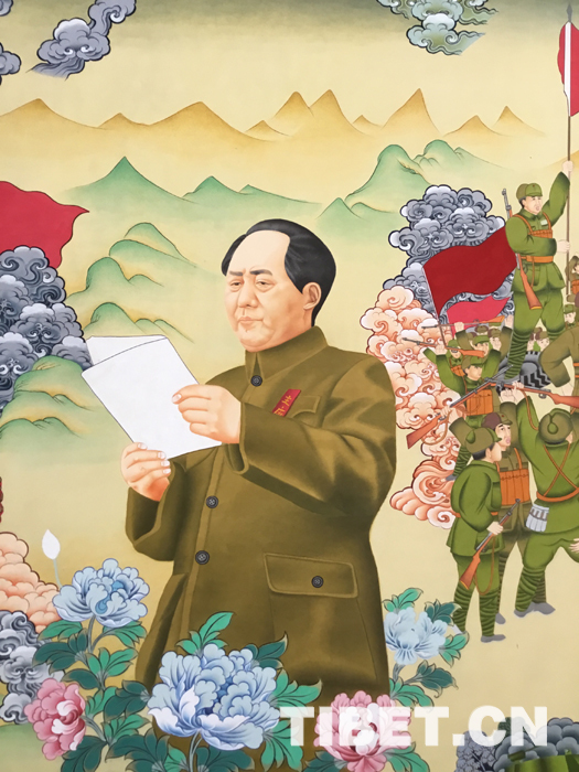 中國西藏網(wǎng)訊 據(jù)悉,由“華銳唐卡藝術(shù)傳習(xí)所”唐卡代表性傳承人扎西多杰設(shè)計(jì)創(chuàng)作的紅色文化唐卡《世界偉人——毛澤東》即將完工,將在2019年問世。
