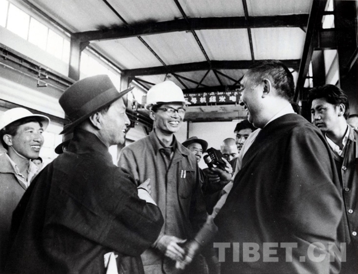 十世班禪大師視察拉薩團(tuán)結(jié)卡墊生產(chǎn)合作社,1982年。劉麗嘉攝