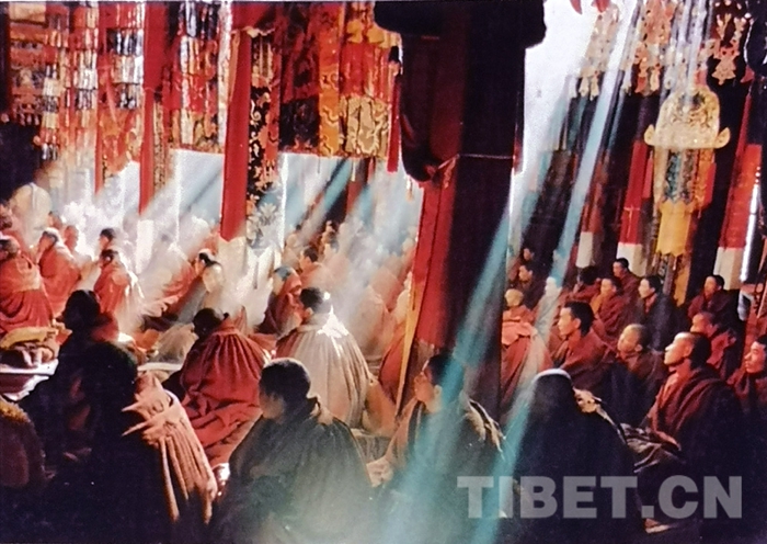 色拉寺僧眾聆聽(tīng)十世班禪大師講經(jīng)。劉麗嘉攝