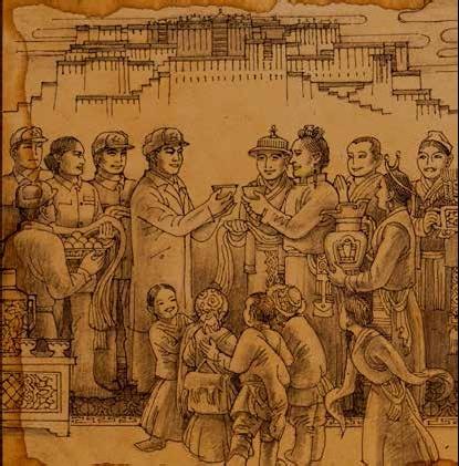 今天是春節(jié),恰好又是藏歷新年,是全家團(tuán)圓的日子。但在西藏工作的同志,卻享受不到這種歡樂。大家比平時(shí)還要忙,我這個(gè)西藏軍區(qū)政治部群眾工作部的部長,比別人就更忙。從早上起床,就安排軍區(qū)首長和各部的領(lǐng)導(dǎo)同志,同西藏地方政府的官員,進(jìn)行拜年活動(dòng),互相祝賀“洛薩,扎西德勒”(新年,吉祥如意)。各處都顯得異常熱烈和親切。