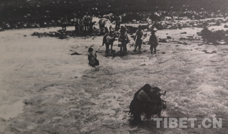 “剛開(kāi)始,給我們分了十幾頭牦牛,沒(méi)過(guò)幾天,就增加到200多頭,馱著前方部隊(duì)需要的糧食、銀元。內(nèi)地的牛我們都沒(méi)趕過(guò),更何況高原的牦牛,而且當(dāng)時(shí)我們自己對(duì)高原還不適應(yīng),每人負(fù)重約50斤,走路困難。我們把糧食和銀元都打成捆,給牦牛上垛子,左邊一個(gè)右邊一個(gè)馱著。前面的人牽著牦牛不讓它走,后面的人把東西放上去,但是牦牛一個(gè)勁兒跳,垛子又掉下來(lái)。我們又得重新來(lái)一遍。后來(lái),我們就學(xué)著老鄉(xiāng)們用吹口哨的辦法,這回再上垛子的時(shí)候,牦牛就不動(dòng)了?!壁s著牦牛,再加上每人的負(fù)重,女兵們每天走四五十里路。不知道翻了多少山,趟過(guò)了多少河。李國(guó)柱清晰記得,有一天他們趟了13條河,河溝沒(méi)有橋也得過(guò)去。有一次,同為首批進(jìn)藏女兵的戰(zhàn)友孫常愉和大家一起過(guò)白定橋時(shí),牦牛把她往河里頂,差點(diǎn)掉下河去,同志們趕緊上前抓住她,她才沒(méi)被頂下去。