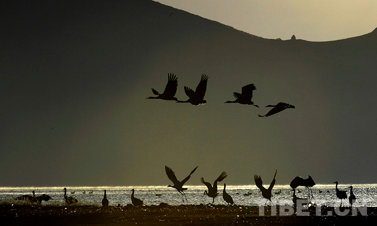 圖為西藏自治區(qū)拉薩市林周縣境內(nèi)越冬的黑頸鶴。攝影:王媛媛