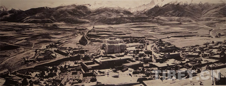 1935年紅軍長征途經(jīng)甘孜,隨后建立了甘孜縣的波巴政府和白利、絨壩岔、孔薩區(qū)的波巴政府。圖為當(dāng)時的甘孜縣城。