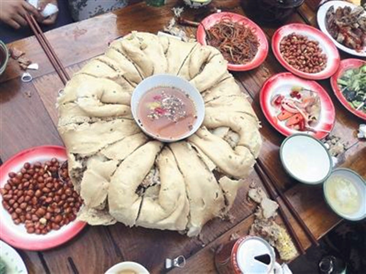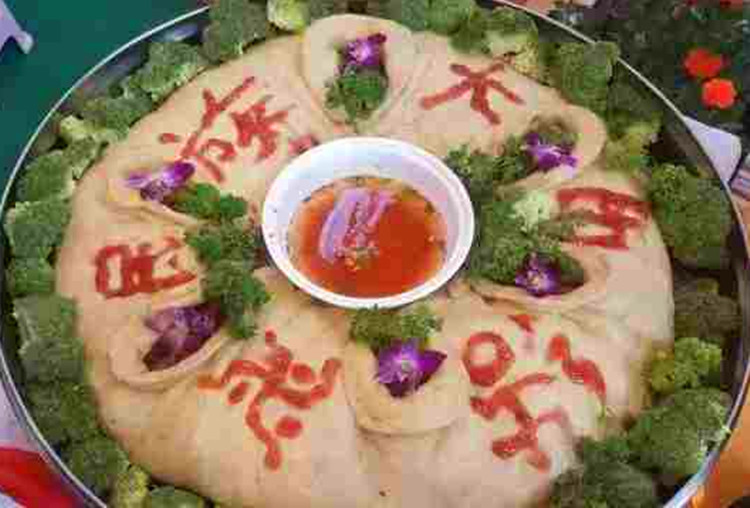 吃“團結(jié)包子”時,進餐的人們圍坐在一起,把冒著騰騰熱氣、散發(fā)著濃濃香味的包子擺在桌子中央,然后每人面前放上一個小碟子,碟子里盛上蘸水。除此之外,還要打出一壺濃釅的酥油茶。