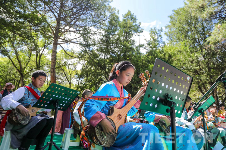 圖為扎念琴班的學生們正在表演。 圖片由堆龍德慶區(qū)青少年活動中心運營方提供