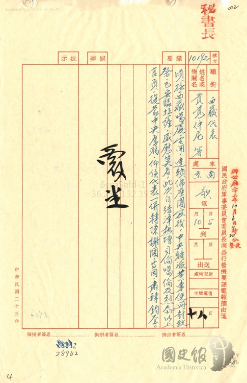 圖為貢覺仲尼轉(zhuǎn)西藏地方給中央政府的電報(bào)